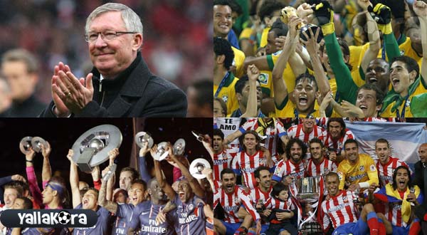 البرازيل بطلة على ملعبها قبل عام من المونديال.. كلمة النهاية لمسيرة أسطورية لأليكس فيرجسون.. أتليتكو مدريد ينتقم من ريال مدريد ليتجرع مورينيو مرارة عام بلا ألقاب.. بايرن ميونيخ بطل العالم بخمسة ألقاب وغيرها ضمن حصاد 2013 للكرة العالمية.